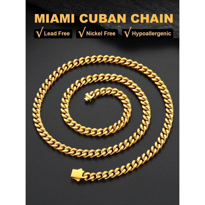 - High Quality Material - Men Cuban Chain is made of 316L stainless steel,14k gold plated, sturdy and strong links, constructed well, lead free and nickel free, hypoallergenic. Waterproof and color lasting ,won’t turn your neck green.