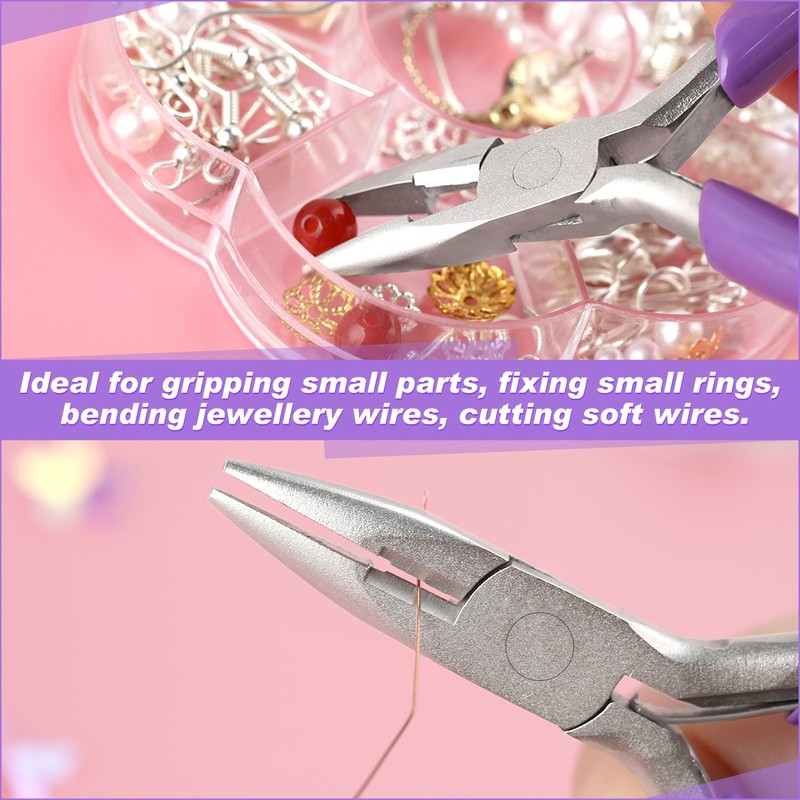 - Anwendung: Zum Greifen kleiner Teile, zum Befestigen kleiner Ringe, zum Biegen von Schmuckdrähten, zum Schneiden weicher Drähte, zur Herstellung von Ohrringen, Halsketten, Armbändern, Schlüsselanhängern und so weiter.