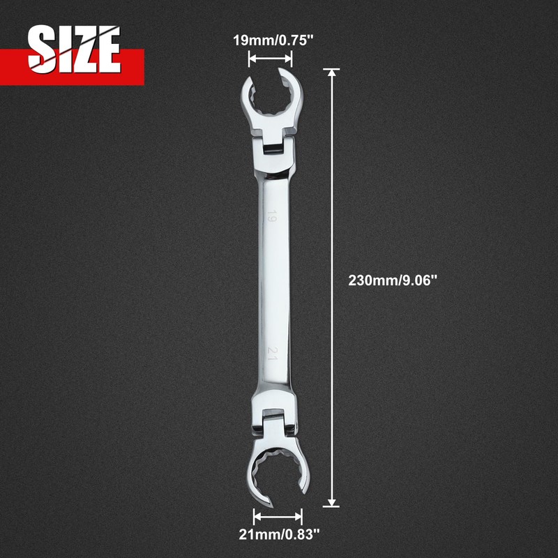 GOLD DEER Flex Head Flare Nut Wrench 19 * 21mm Wrench Flexible Flare Nut Line Wrench Metric Flare Nut Wrench Set Metric Flare Tool Flex Tools 40Cr for Automotive Repairs Plumbing Repairs