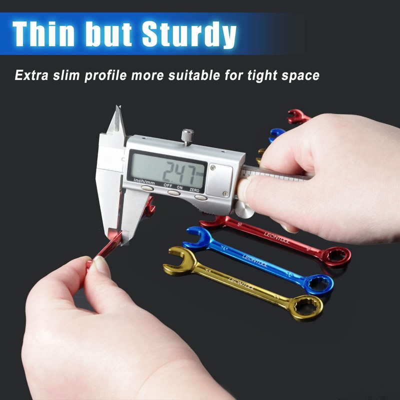 - EXTRA SLIM PROFILE Compared with the same kind of others, our wrenches are thinner and lighter, mini size is very portable for storage in bag, trunk, toolbox and so on.