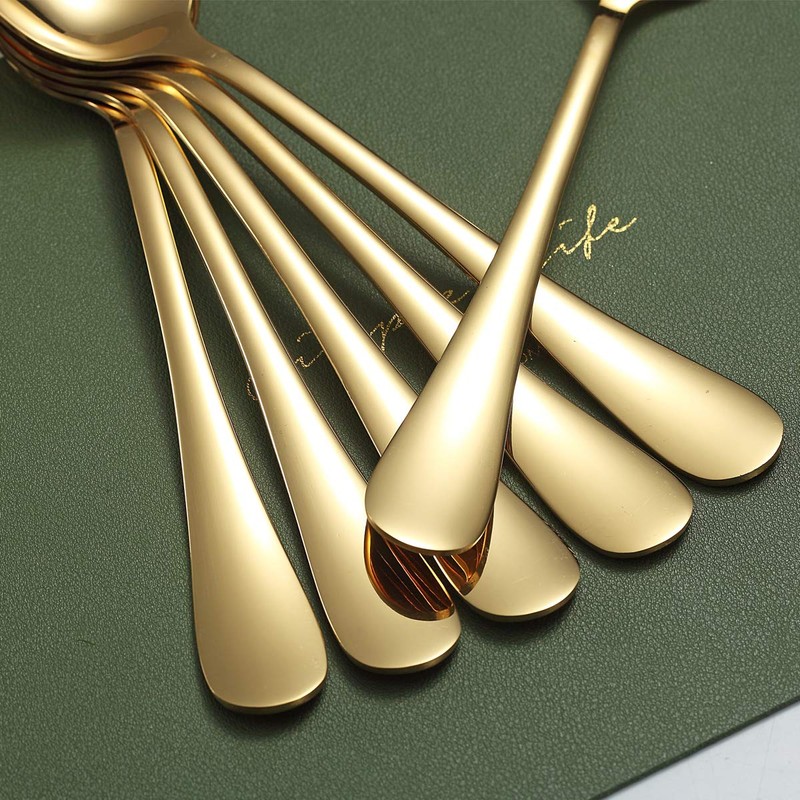 - Made of premium high quality stainless steel, BPA free / lead free, Rust-resistant, sturdy and durable for years. High quality gold titanium plating on the spoons. It is so beautiful and nice to be a ideal gift.