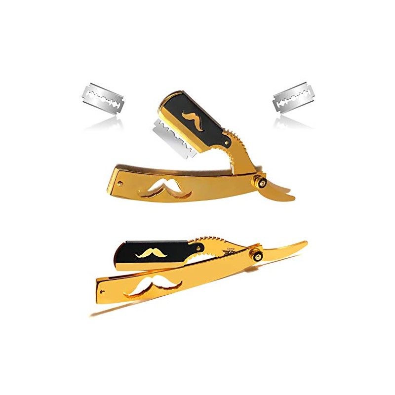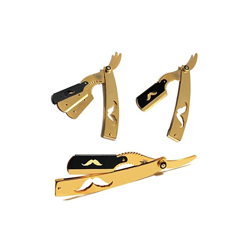 Gold Dipped Barber Straight Edge Razor Compatible with Double Edge Blades - Used for All Purpose Shaving - Folding Style Barbershop Shape-Up Shaving Razor
