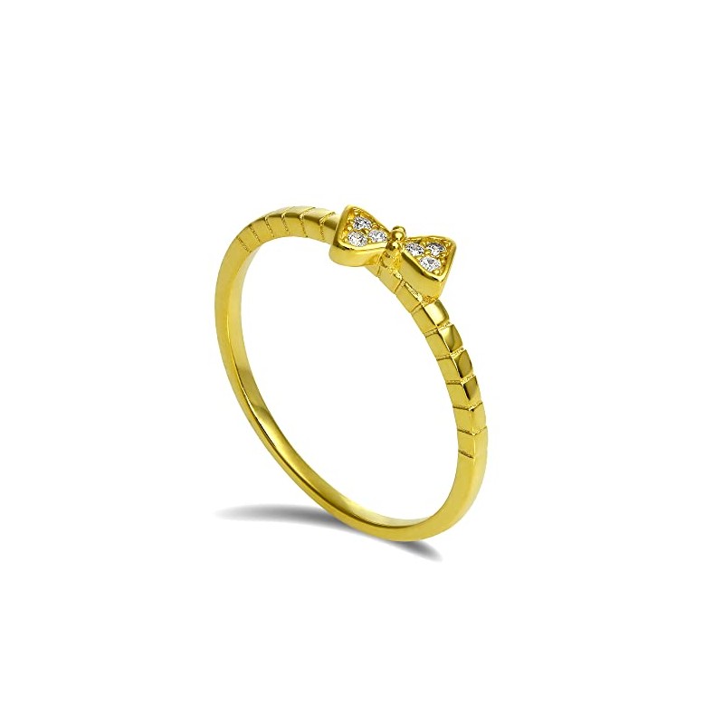 Gold Dipped Sterling Silver CZ Crystal Bow Stacking Ring Size U (J - V Available)