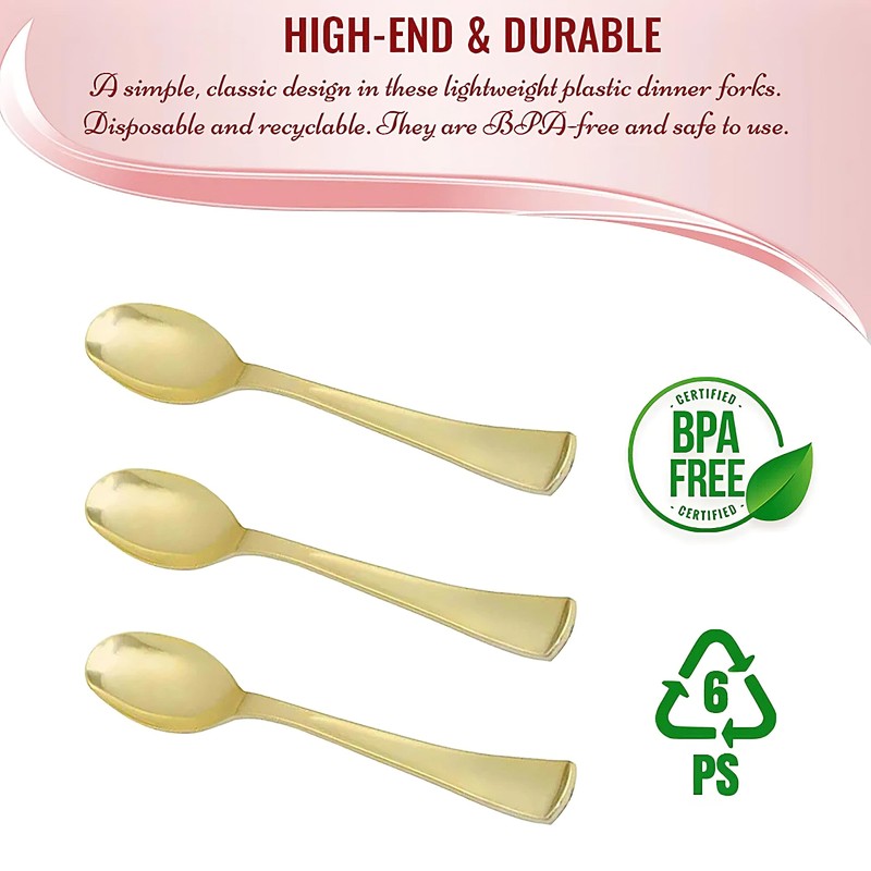 - ELEGANT GOLD DESIGN: These 9.75-inch gold disposable serving spoons add a touch of sophistication to any table, making them perfect for weddings, parties, buffets, and formal events.