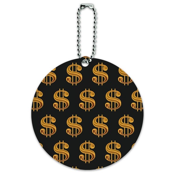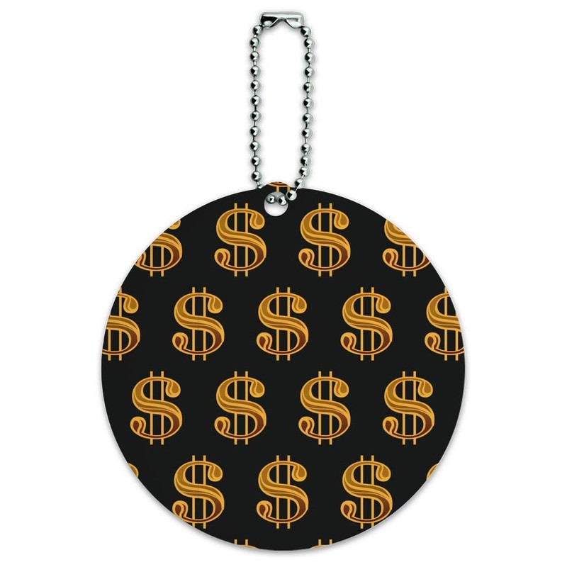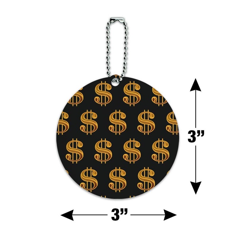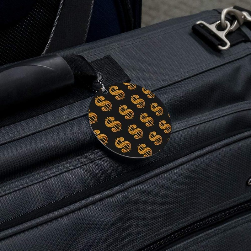 Gold Dollar Sign Money Pattern Round Luggage ID Tag Card Suitcase Carry-On