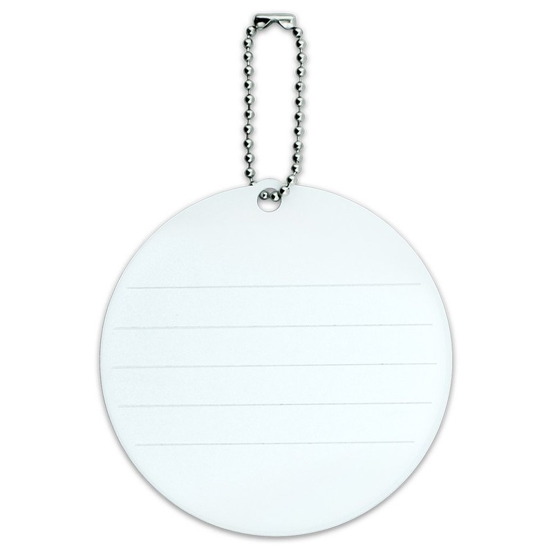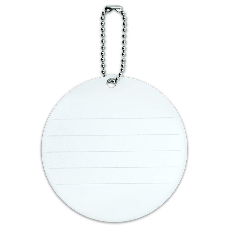 - QUALITY MATERIAL: Our stylish tag is crafted from thick, sturdy plastic. The featured design is displayed on one side, with printed lines on the back for contact info. Approximately 3" (7.6cm) in diameter. 4" bead ball chain included.