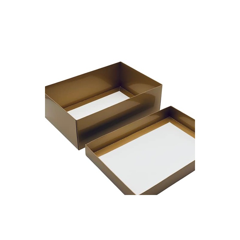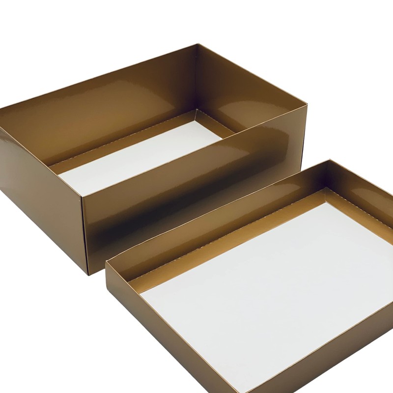 - Gold premium flat-packed gift box for presents, hampers, keepsakes, wedding favours or party boxes.
