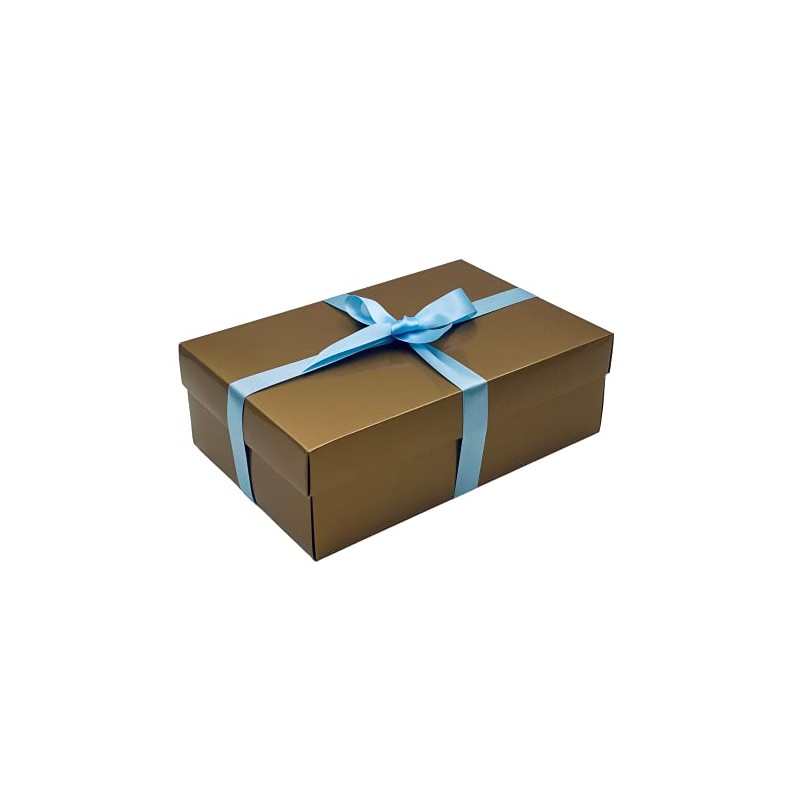 Gold Gift Box with Lid | Pick Your Ribbon Colour | Large Memory or Hamper Boxes | Flat-Packed Gift Boxes for Presents, Birthday or Baby Gifts | Size 30x20x10cm (Baby Blue Ribbon 70)
