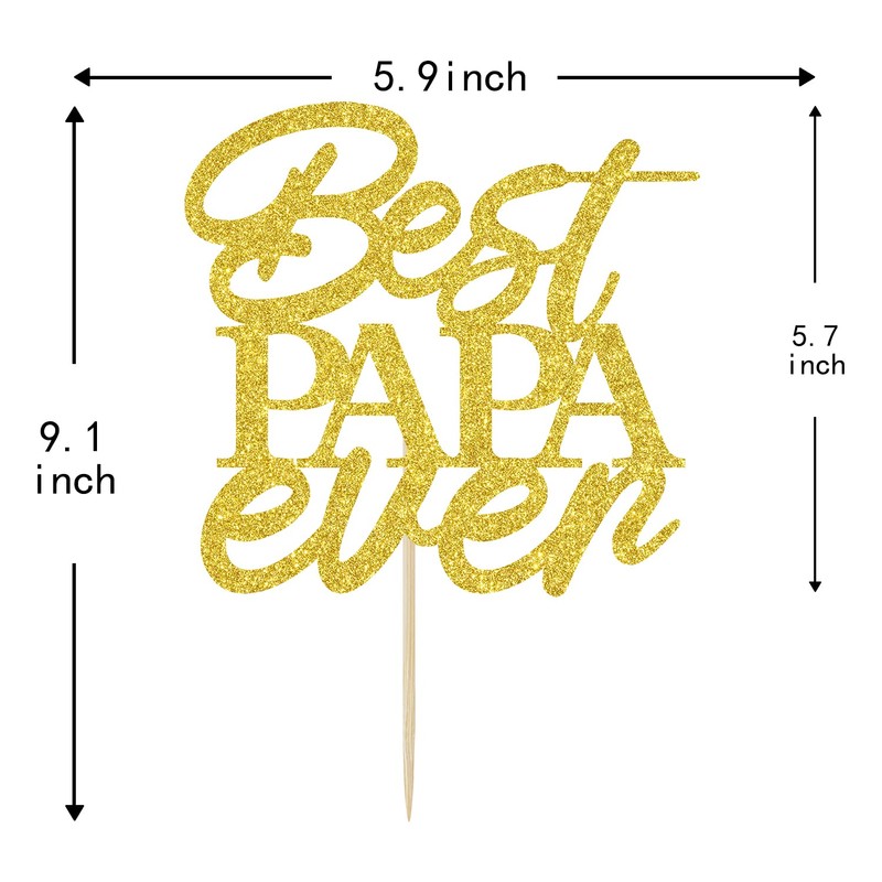 Gold Glitter Best Papa Ever Cake Topper, Happy Birthday Dad Cake Decoration for Father's Birthday, Happy Father's Day Party Supplies