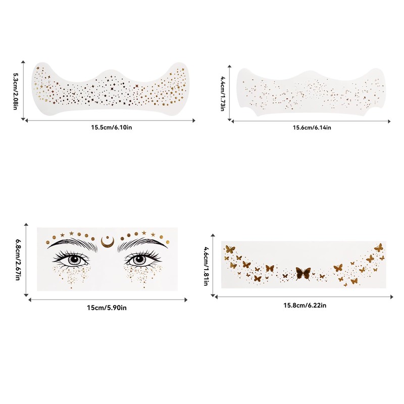 - LONG LASTING EFFECT We have updated the tattoo to make it last all day long. After application, it stays firmly in place and does not fall off easily. Waterproof and sweat-proof, even if you wear it to the beach, pool party, it can still last and keep your glowing look all the time. With our glitter summer shoots for face, you can enjoy your beauty and your speckled look all day long.