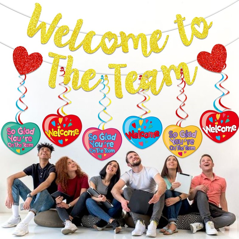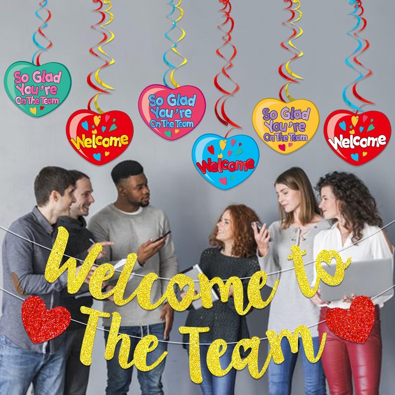 - Package Includes: 1set gold WELCOME TO THE TEAM banner and 6Pcs welcome sign hanging swirls.Perfect for new employee welcome decorations.