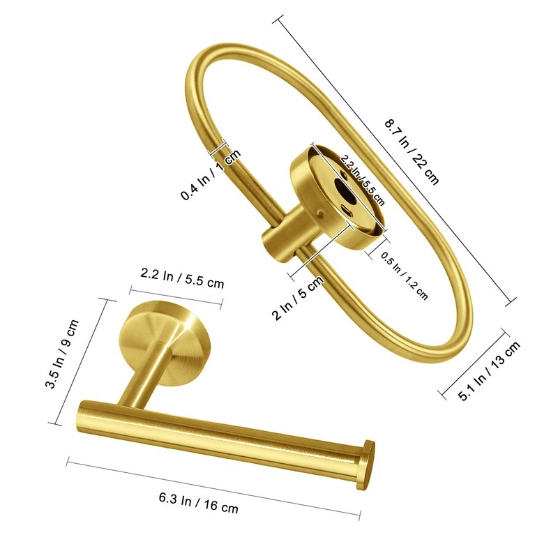 Gold Hand Towel Holder 2-Set - Gold Towel Ring and Gold Toilet Roll Holder 09-0209