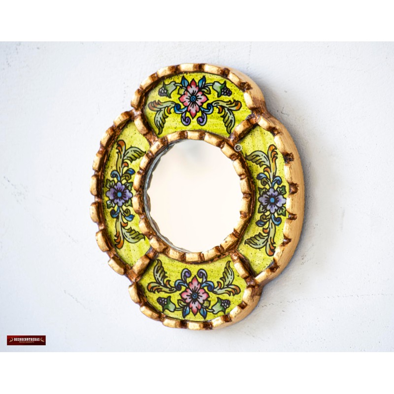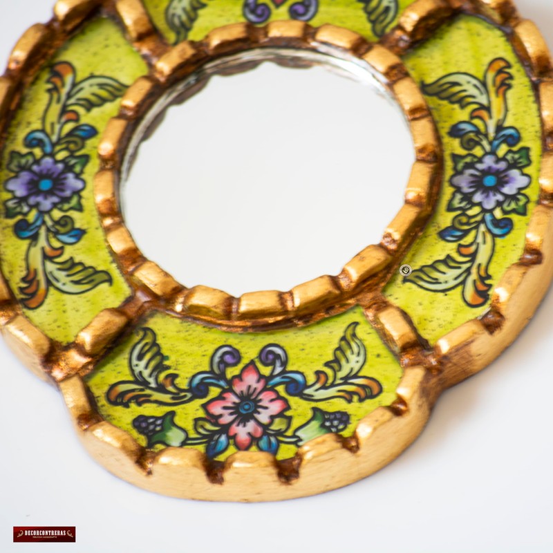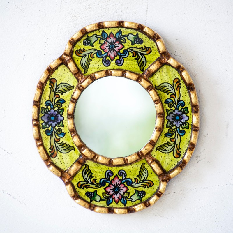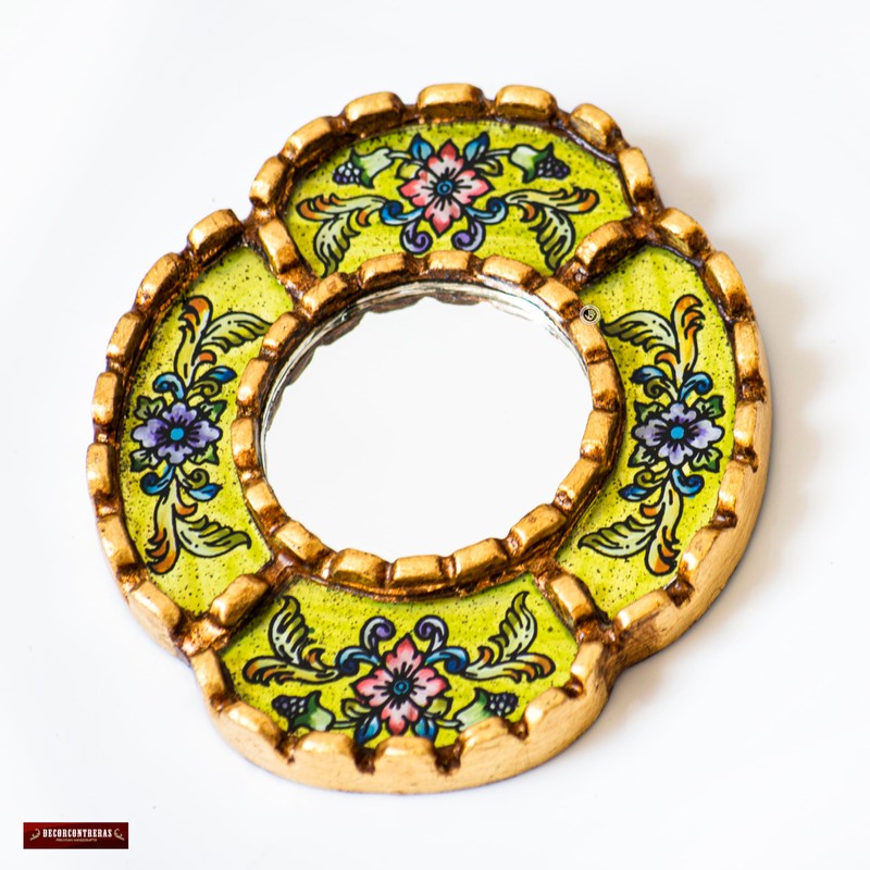 Gold Hanging Oval mirror on the wall home decor | Peruvian Hand-painted glass small mirror wall art decorations (Lime)