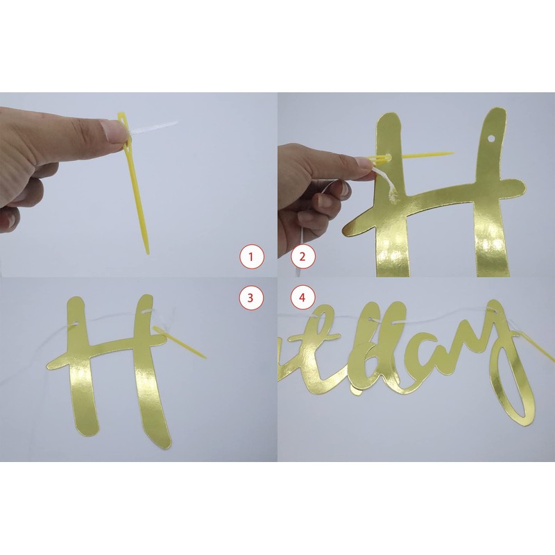 - What you will receive: The package contains 1 golden happy birthday banner, 1 hanging string and a plastic needle; you need to assemble these banners with the hanging string to make your own birthday decoration