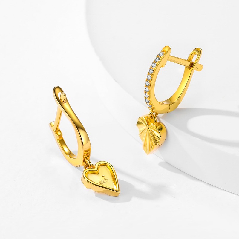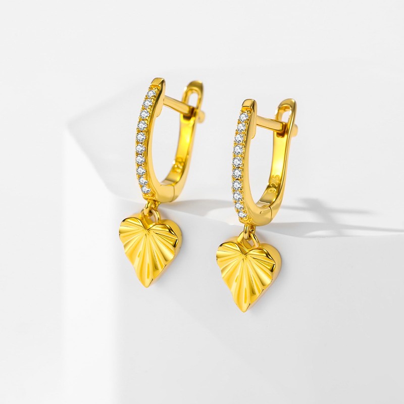 Heart Earrings Design:The drop part of the earrings is crafted with a chasing pattern technique to create a three-dimensional love heart shape. The surface is intricately engraved with delicate textures, delivering a light and agile visual effect.