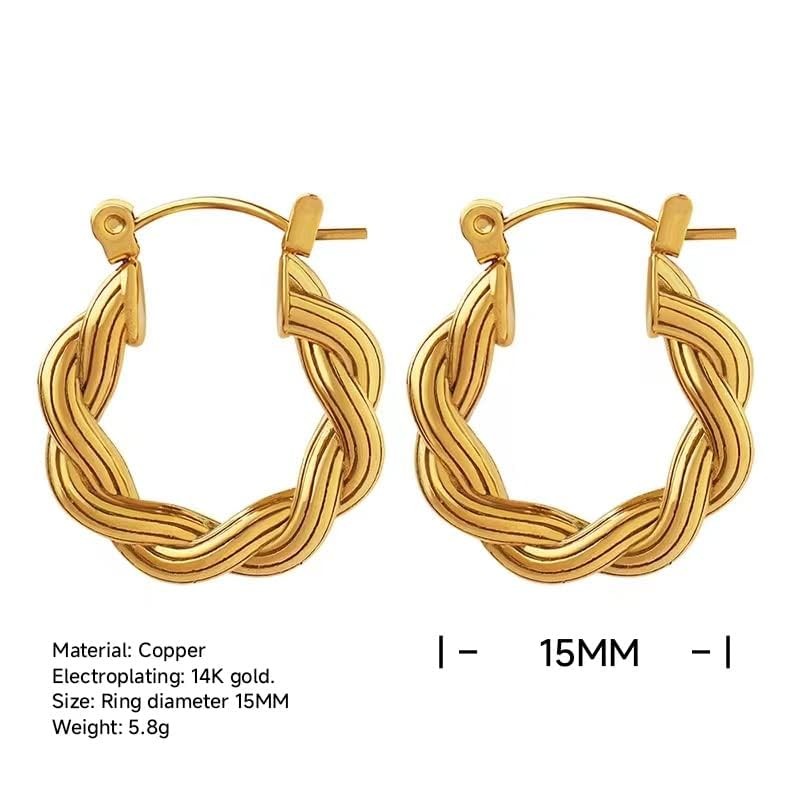 Gold Hoop Earrings for Women,14K Gold Plated lightweight hypoallergenic Twist Twist Hoop Earrings, 15MM, Sterling Silver, 14k gold