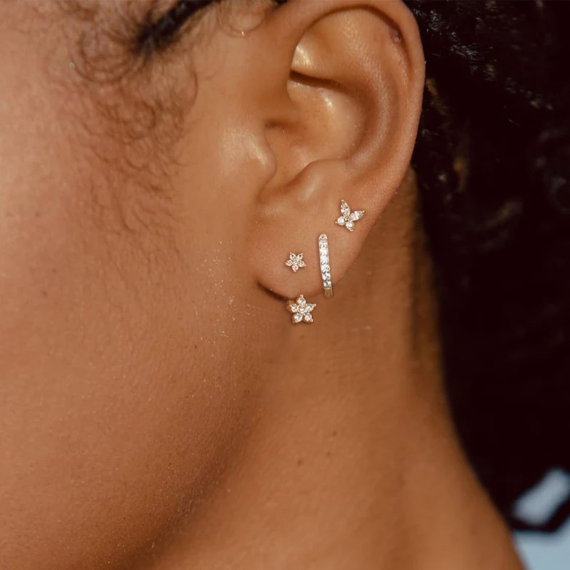 - Flower Butterfly Emerald Huggies Earrings: These earrings are designed to complement a wide range of styles, whether you prefer the whimsical charm of flower or butterfly designs or the sleek look of emerald huggies earrings for women.
