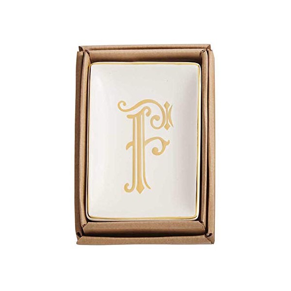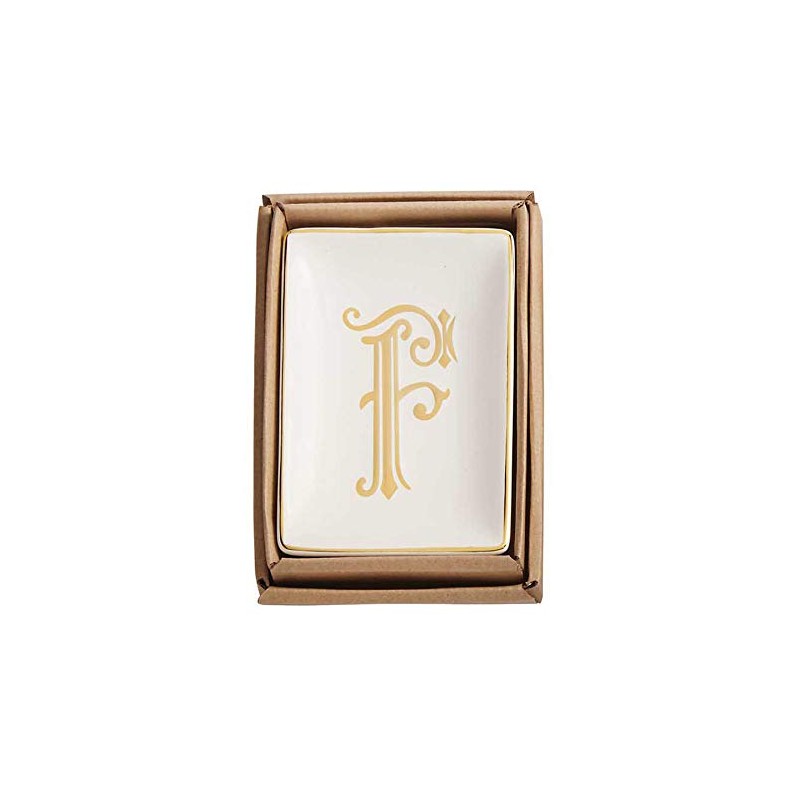 - Small stoneware tray features gold rim and center initial. Arrives in kraft gift box. Gold Initial Trays.