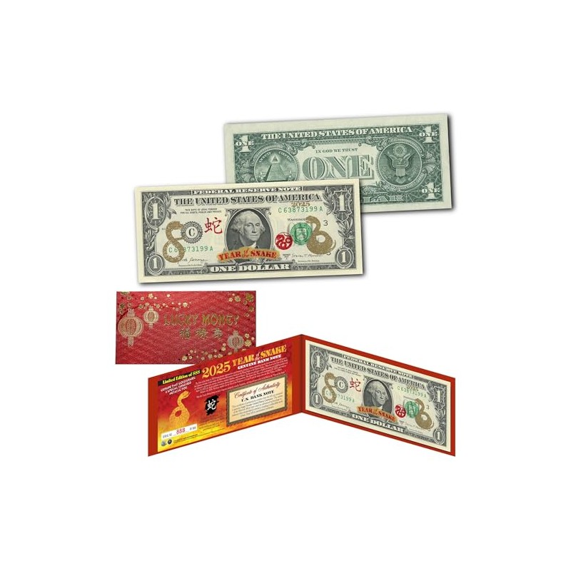 Gold Leaf 2025 Chinese Lunar New Year Year of The Snake Genuine One-Dollar Federal Reserve Note Collectible Limited Edition of 888