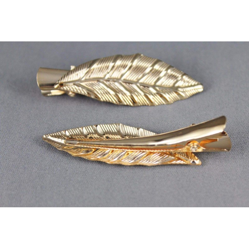 Gold leaf feather leaves metal side alligator gator clip hair claw set of 2