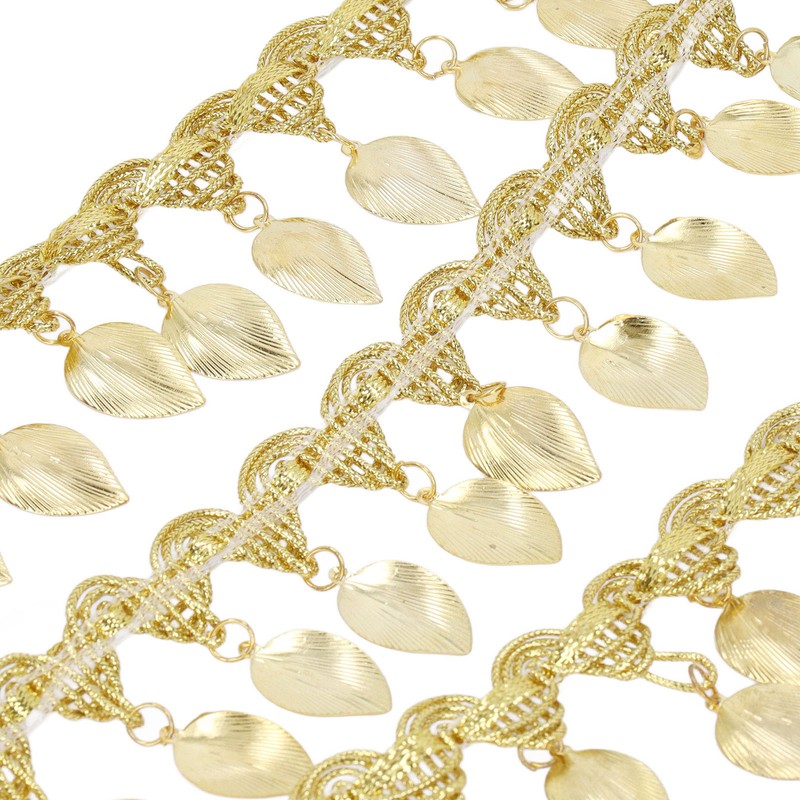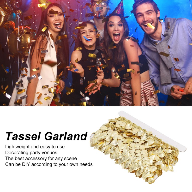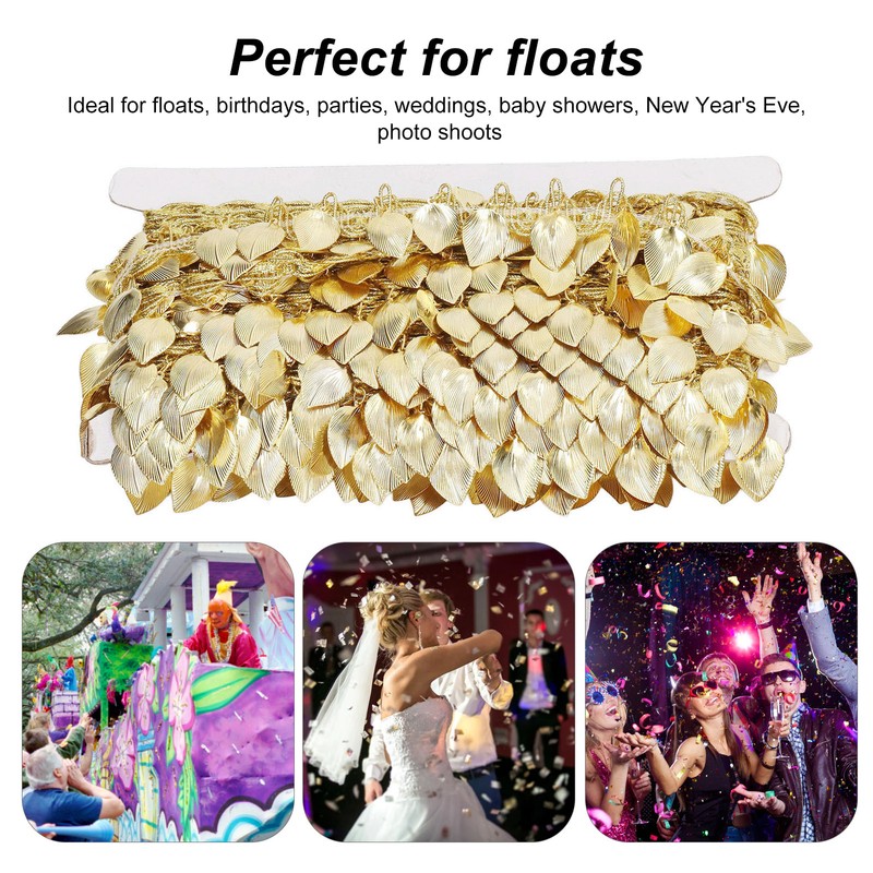 1、SCOPE OF APPLICATION: Gold leaf garland can be used to decorate floats, birthdays, parties, weddings, baby showers, new year's eve, photo shoots and other venues. 2、DIY DECORATION: Perfect for floats, gold leaf trim ribbons are the perfect accessory for any scene and can be DIY to your own needs. 3、GLOSSY AND SHINY: Metal leaf ribbon trim is shiny, elegant and long lasting, making your decoration more stylish and impressive. 4、EXQUISITE WORKMANSHIP: Metal leaf ribbon trim is small and light in weight but exquisite, each grain is carefully designed. 5、EASY TO USE: Metal leaf ribbons are easy to use and everything around them will shine with golden colors and leaf tassels.