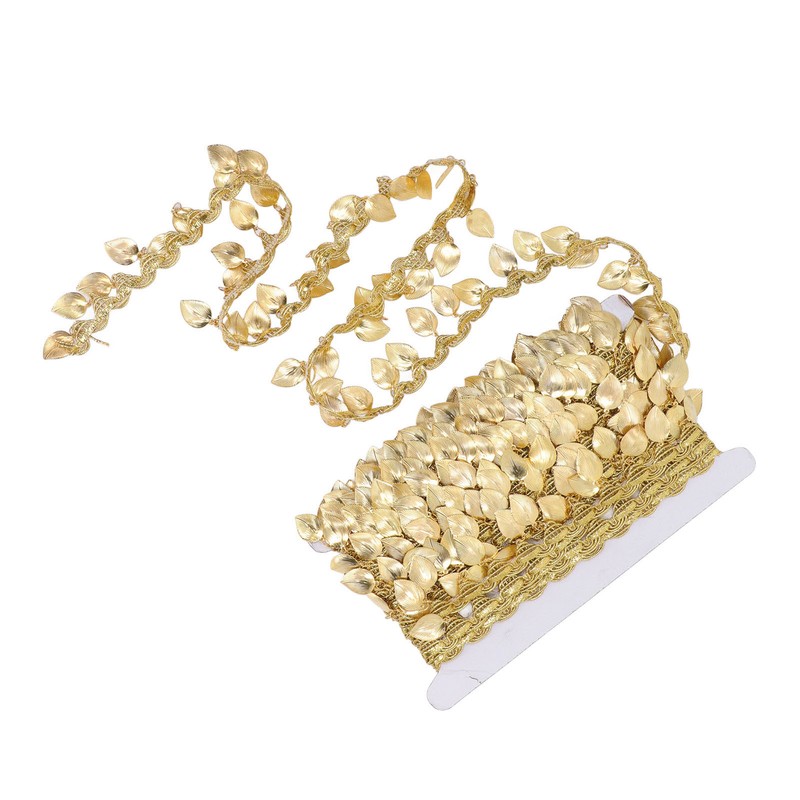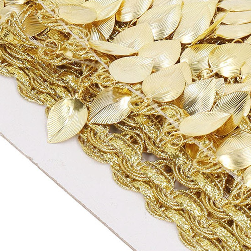 Gold Leaf Garland 10 Yards Sparkling Metal Leaf Ribbon Trim for DIY Trim Decorations Oblique Leaf Shape