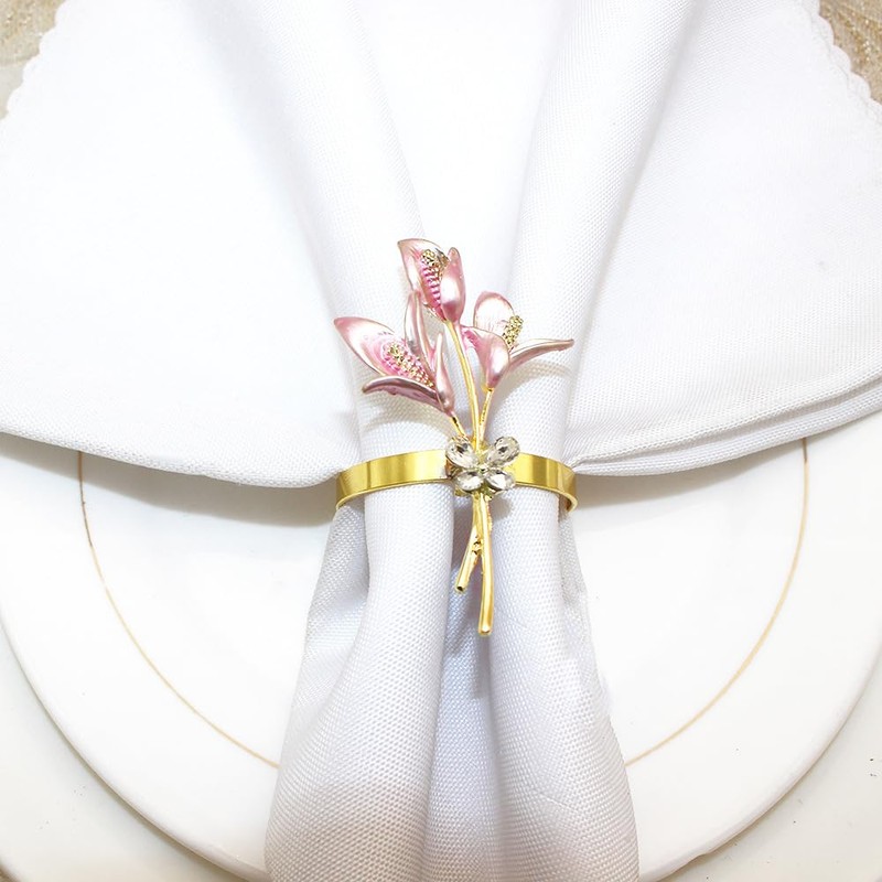 Gold Lily Napkin Rings Set of 6,Metal Napkin Ring Holders with Rhinestone for Wedding Fall Thanksgiving Christmas Fall Party Holiday Banquet Delicate Serviette Buckles Decor Favor (Lily-Pink)