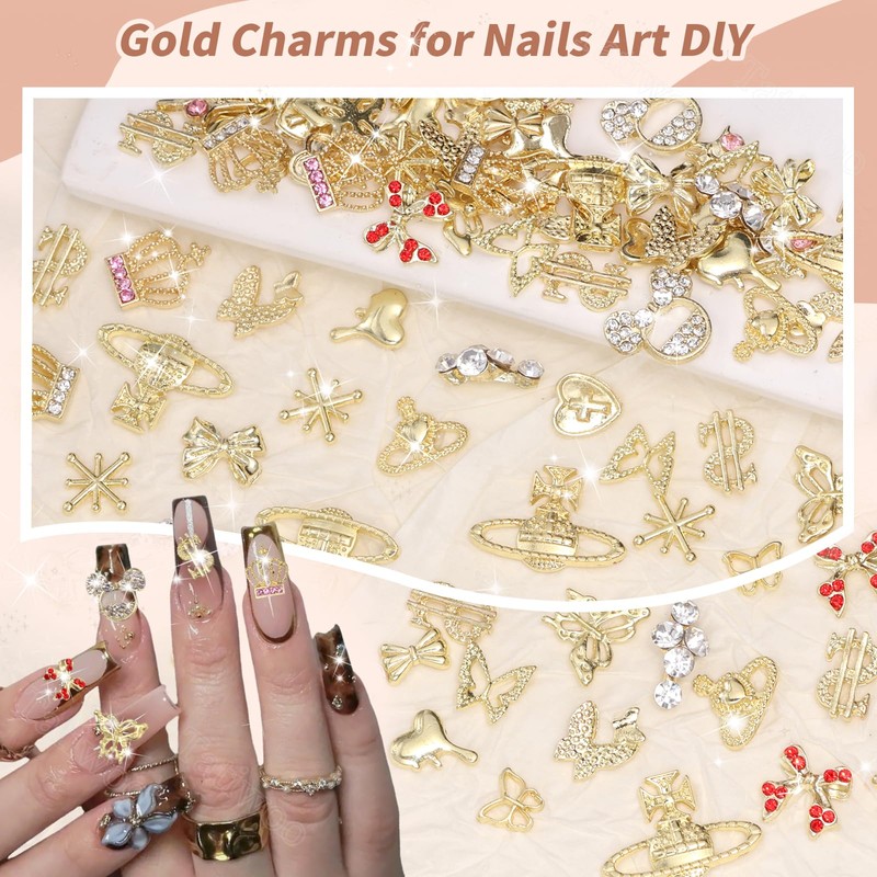 - Gold Nail Charms: This set contains 96 pieces gold nail jewelry gems charms, you can mix and match other Y2K nail charms to create your unique and personalized nail art design. These 3d gold nail charms add luxury and sophistication to your nail