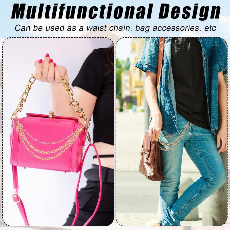 - Trendy Hip Hop Style: Elevate your outfit with this stylish gold chain, perfect for adding a bold, edgy touch to jeans, pants, belts, or handbags for a hip-hop or punk look.