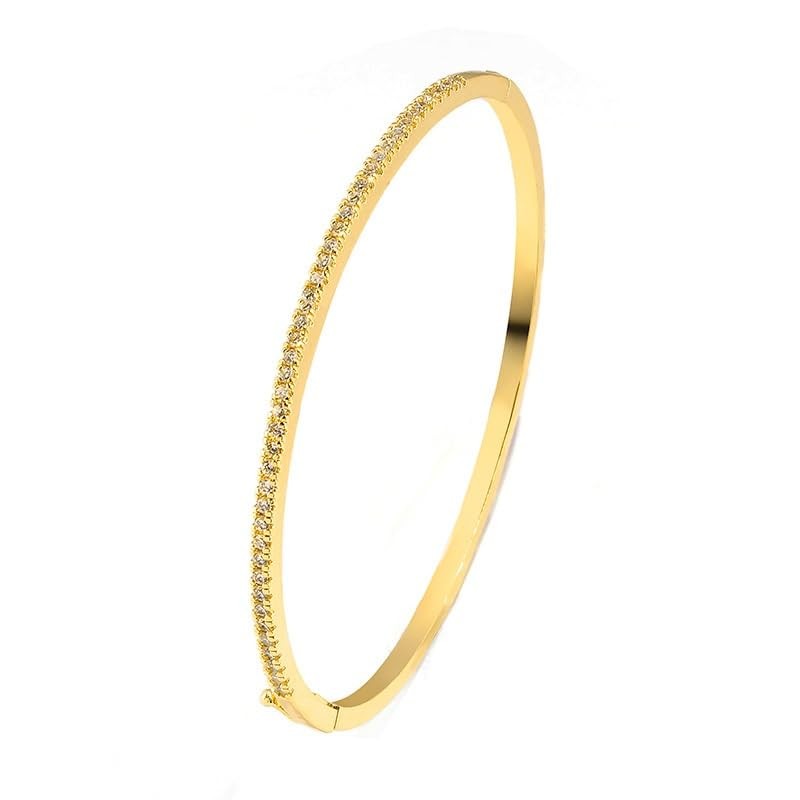 Gold Plated Cubic Zirconia Bangle Classic Bracelet (Golden, One size)