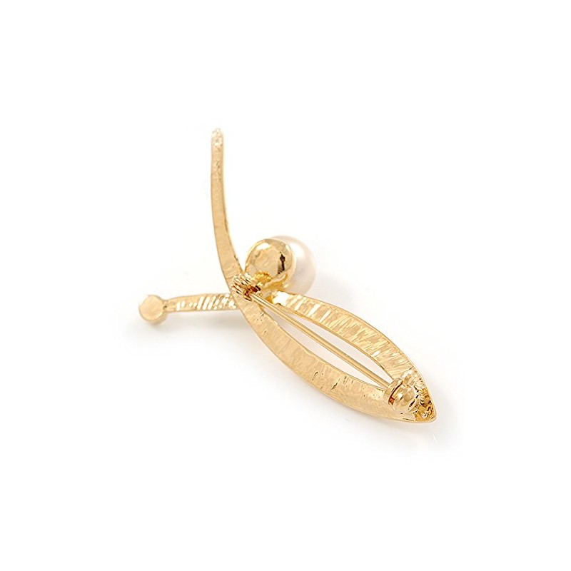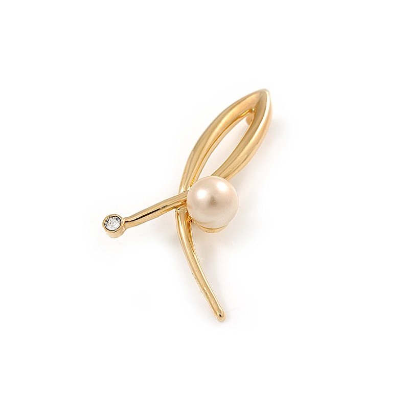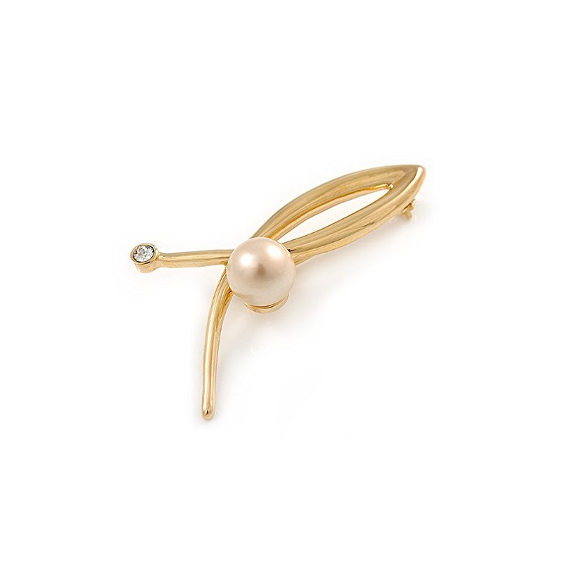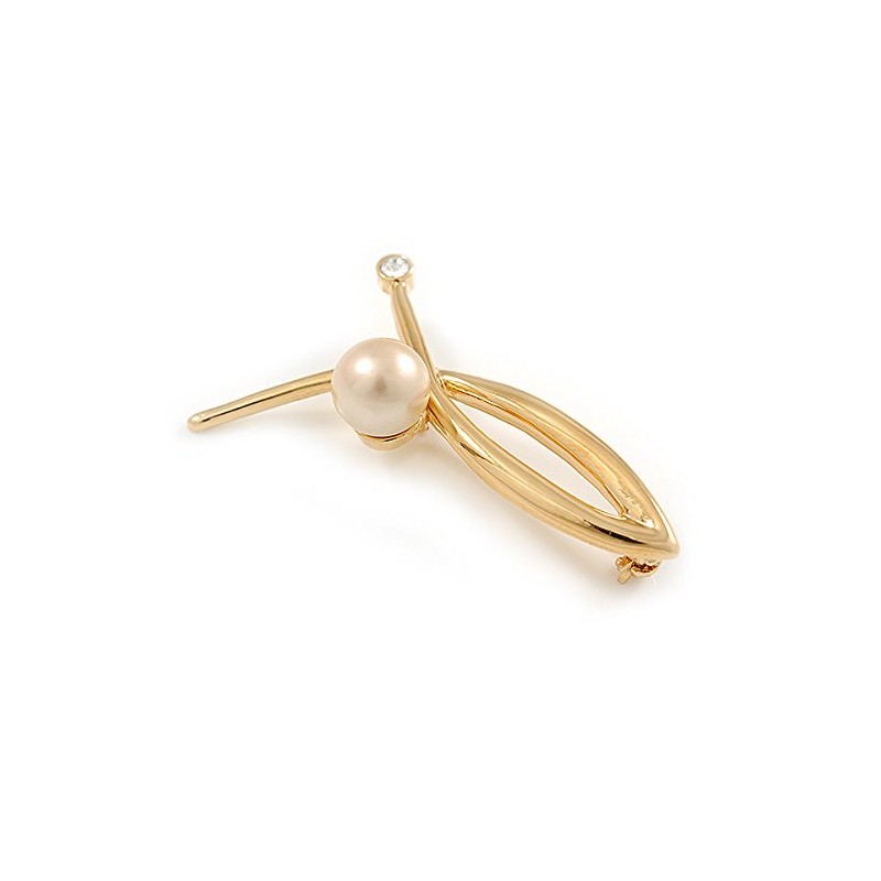 Gold Plated Loop with Faux Pearl Brooch - 50mm L