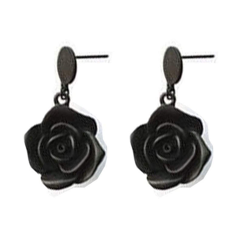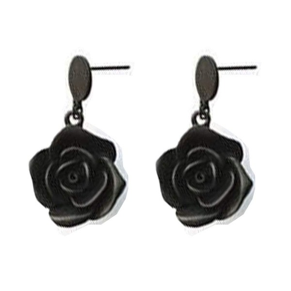 - Delicate black resin roses have been used to create these feminine flower earrings with gold plated lever back ear hooks. Silver or Gold Plated Stud Earrings, 20mm Porcelain Roses.Flower size: 20mm,Earring size: 34mm full length including push back ear hooks.