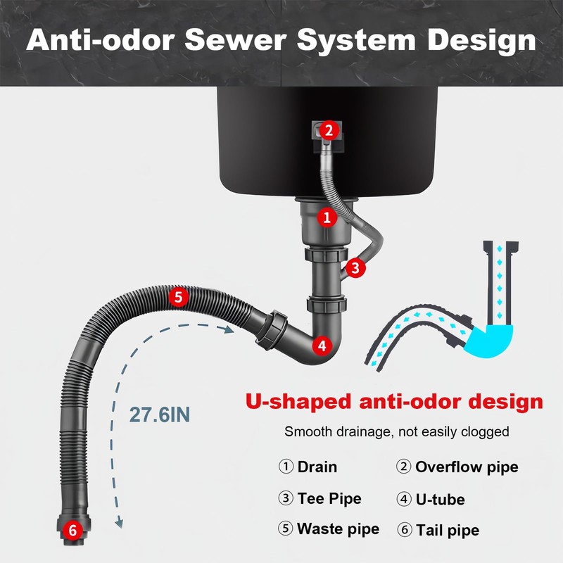 - 【U-shaped drain design】- Stainless steel drain filtration system can drain quickly and easily intercept food residue, easy to drain without clogging.