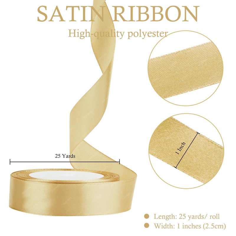 Gold Satin Ribbon, 1 Inches x 25 Yards Solid Fabric Ribbons for Gift Wrapping, Flower Bouquet, Crafts and Wedding Party Decoration