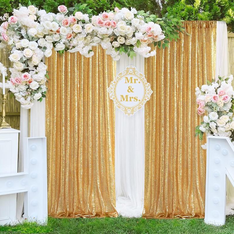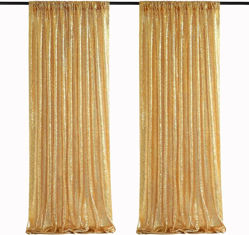 Gold Sequin Backdrop Curtain Panels Stage 2 Count 2FTx8FT Wedding Party Background Drapes Banners
