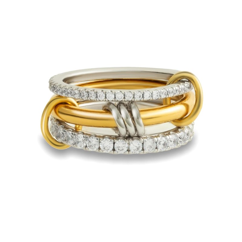 - gold and silver rings:The stackable ring consists of three rings, two silver, one gold, connected by a gold vein ring, creating a sleek, minimalist ring set that is sure to make your fingers look distinctive and sparkly