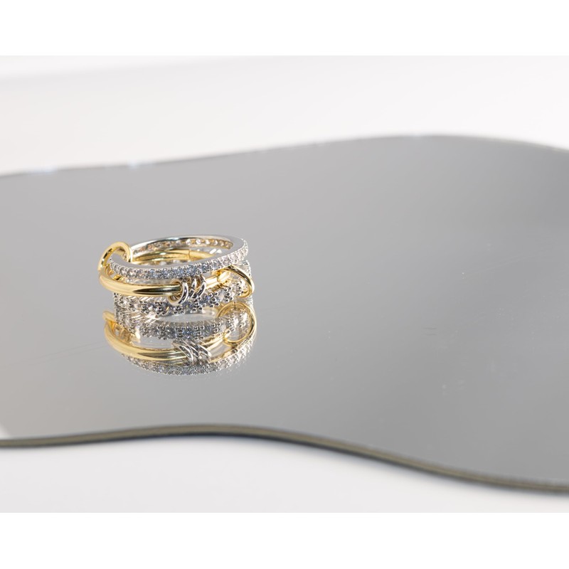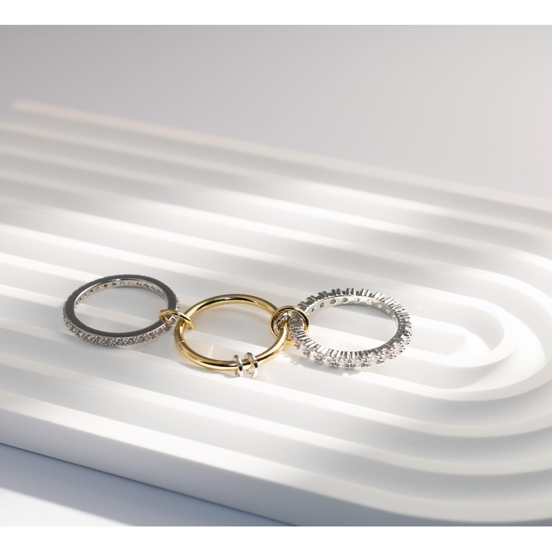 - Mixed Metals Stack Rings Set : This stackable ring set features three rings two silver and one gold connected by a gold-vein ring, offering a sleek, minimalist look. Perfect for adding a distinctive sparkle to your fingers