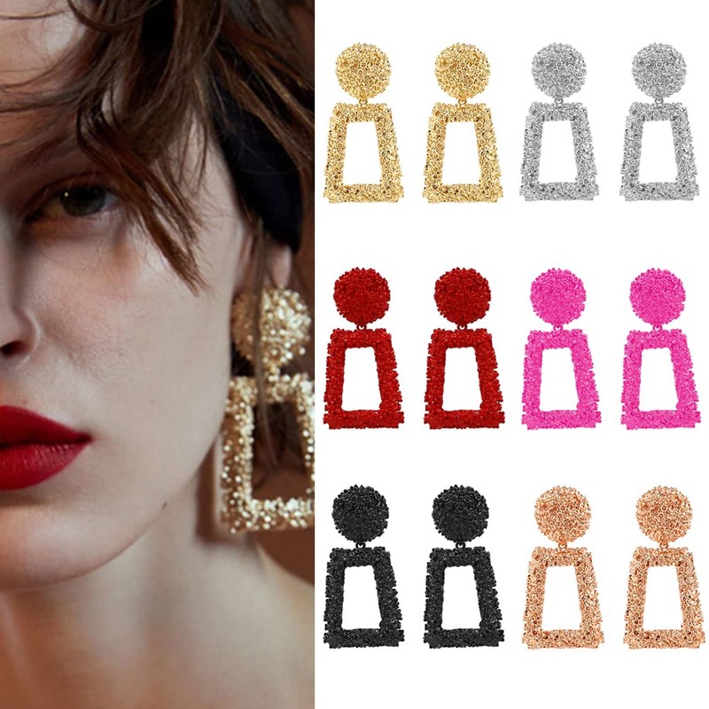 - Unique Fashion Design: Gorgeous geometric large square dangling gold earrings with a raised design, perfect cutting process, create a sparkling evening look for you. Make you glamorous, elegant and charming.
