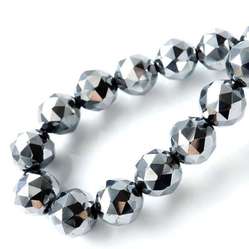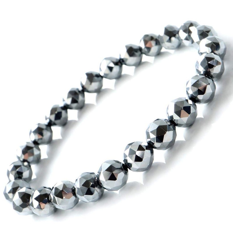 Gold Stone High Purity Terahertz Mineral Star Cut 100 Sides Bracelet, 0.3 inches (8 mm), Inner Diameter: Approx. 6.5 inches (16.5 cm)