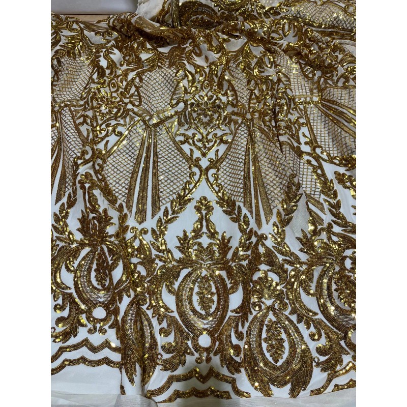 Gold Stretch Sequin Lace Fabric/Gold Sequin Fabric/Sequin for Prom -Per Yard