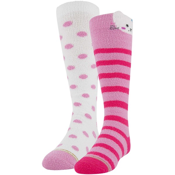 Gold Toe Girl's Fuzzy Faces Kitty Knee High Socks, 2 Pairs, Pink/White, Shoe Size: 9-3.5