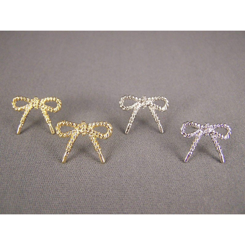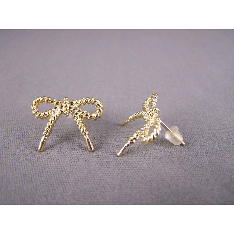 Gold tone rope knot knotted ribbon bow twist stud post earrings 3/4 wide