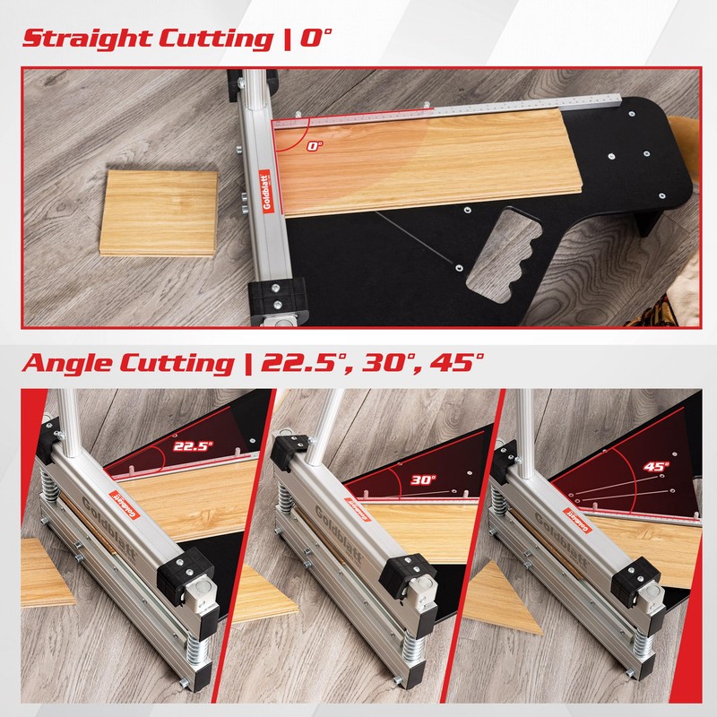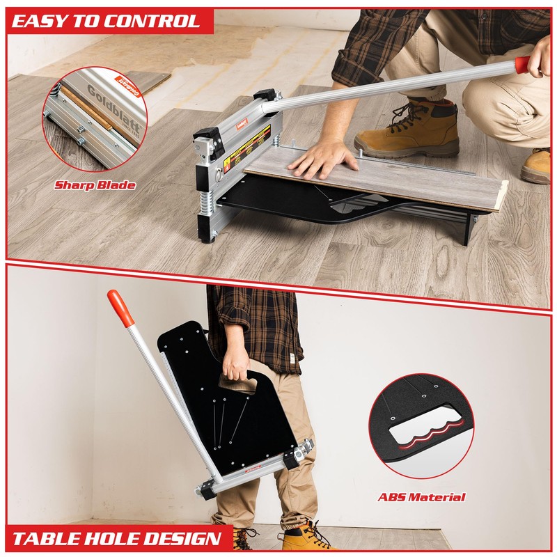 • Laminate Floor Cutter: Goldblatt vinyl floor cutter, Maximum cutting width - 13 inches, maximum cutting thickness - 16mm; Cuts many shapes on the floor, straight or angle cutting at 0°, 22,5°, 30° & 45° meet different needs; No Dust, Noiseless, No Electricity Needed, easy and professional cutting on vinyl floor