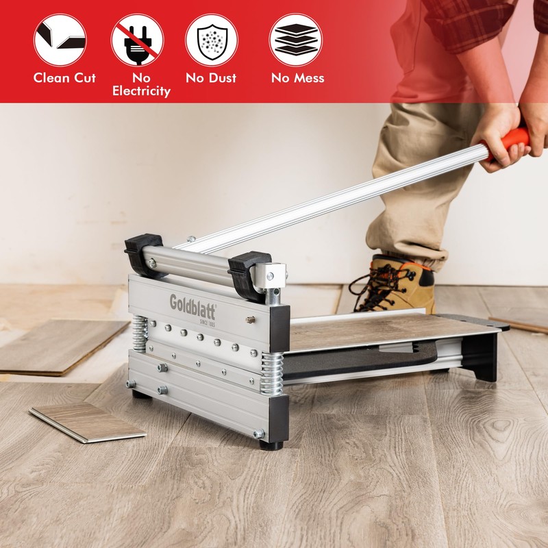 • Wide Cuts Range: Goldblatt 13in. flooring cutter is designed to cut laminate flooring, engineered hardwood, parquet, VCT, LVT, SPC, PVC, LVP, WPC, luxury vinyl tile, luxury vinyl plank, vinyl composite tile, cement board siding, and more; NOT Suitable for bamboo, solid wood and other woods with a similar hardness rating