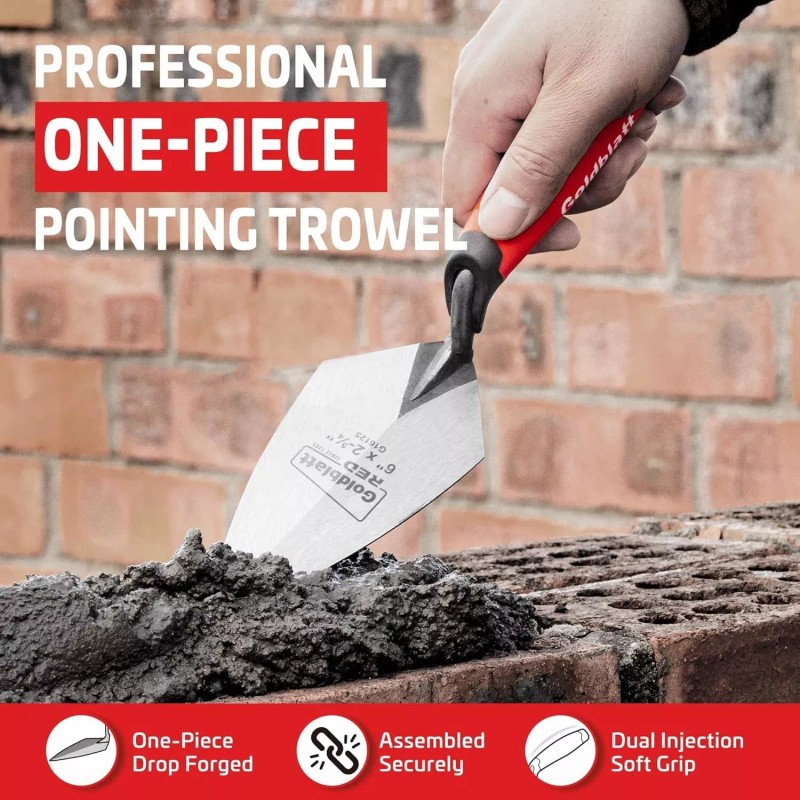• One-Piece Forged Blade: Crafted from a single piece of premium high carbon steel, the pointing trowel offers superior strength, durability and wear resistance, with more even weight distribution for enhanced balance. Goldblatt RED pointing trowel is 60% more flexible and the blade is professionally polished for smooth, effortless experience