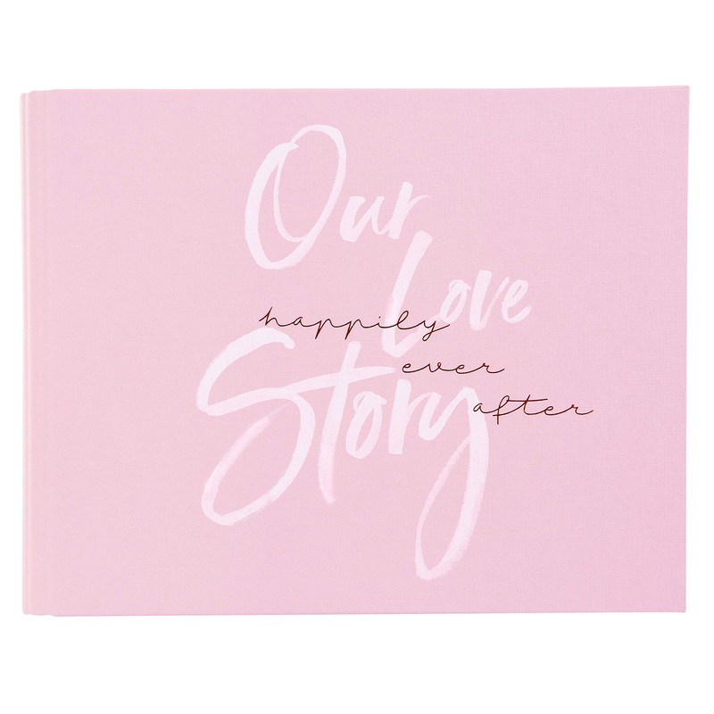 goldbuch 47168 Wedding Guest Book Our Love Story, Photo Guest Book with Concealed Spiral Bound, Photo Book with 50 White Pages, Approx. 29 x 23 cm, Cover with Linen Texture and Rose Gold Embossing