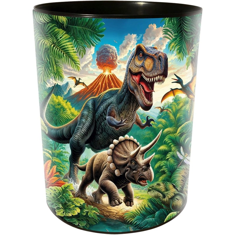 Papierkorb mit Dinosaurier-Motiv Vulkan, Made in Germany, Langlebiger und robuster Kunststoff, Einfache Reinigung, Abwaschbar