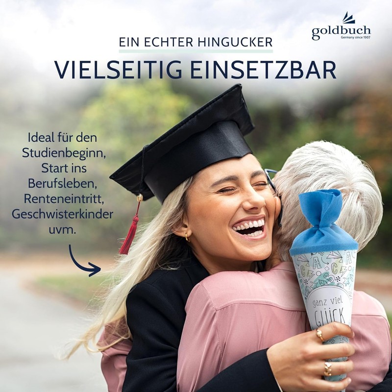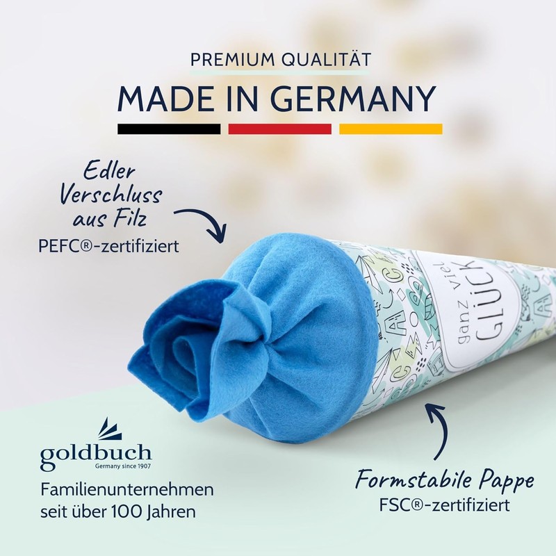Goldbuch 93 216 School Gift Cone – 35 cm White Cardboard Sugar Bag with Sketch Pattern, Felt Closure, and Durable Lacquer Finish – Perfect Back-to-School Present for Boys and Girls