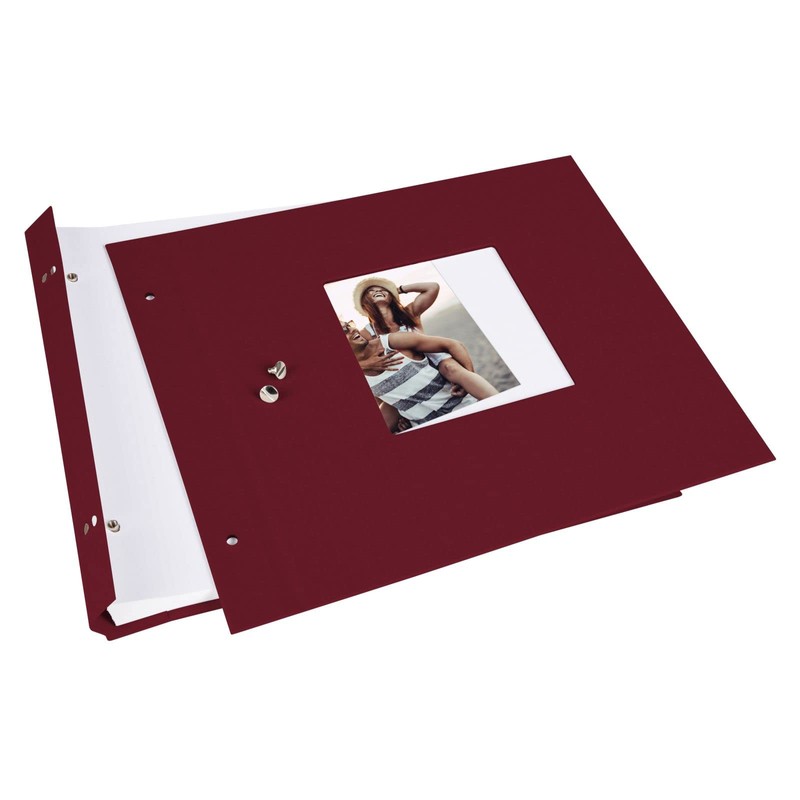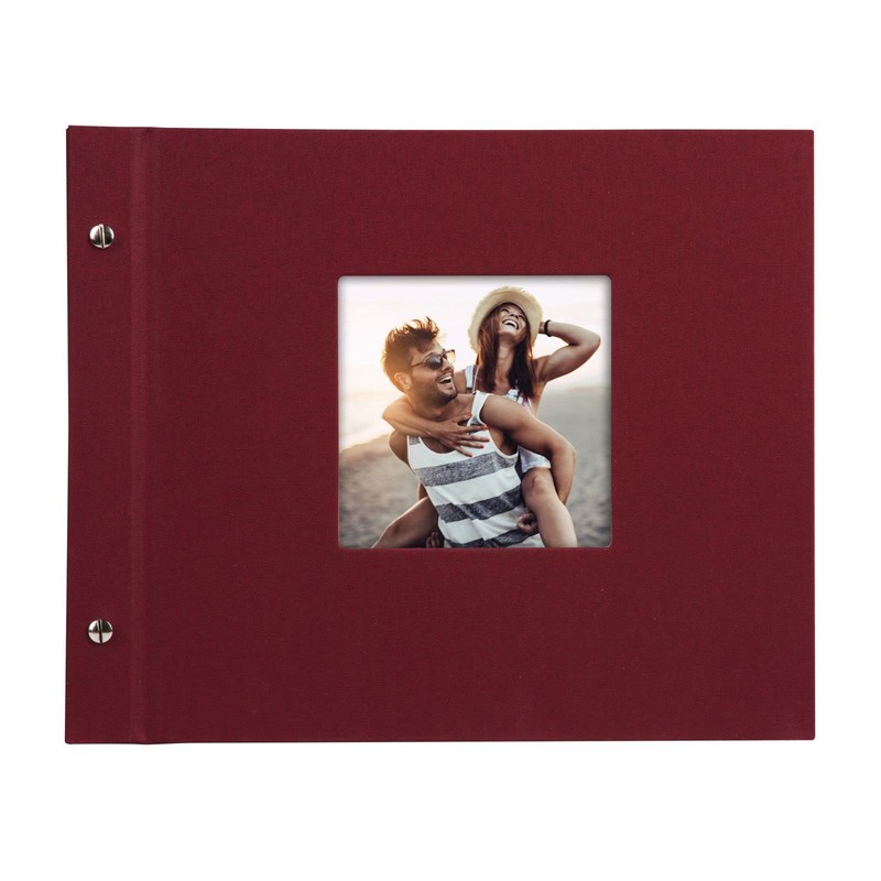 goldbuch Bella Vista Screw Album with Picture Cut-Out 39 x 31 cm, 40 Pages with Protective Dividers Expandable Linen, Grey, 28, bordeaux, 30 x 25 cm
