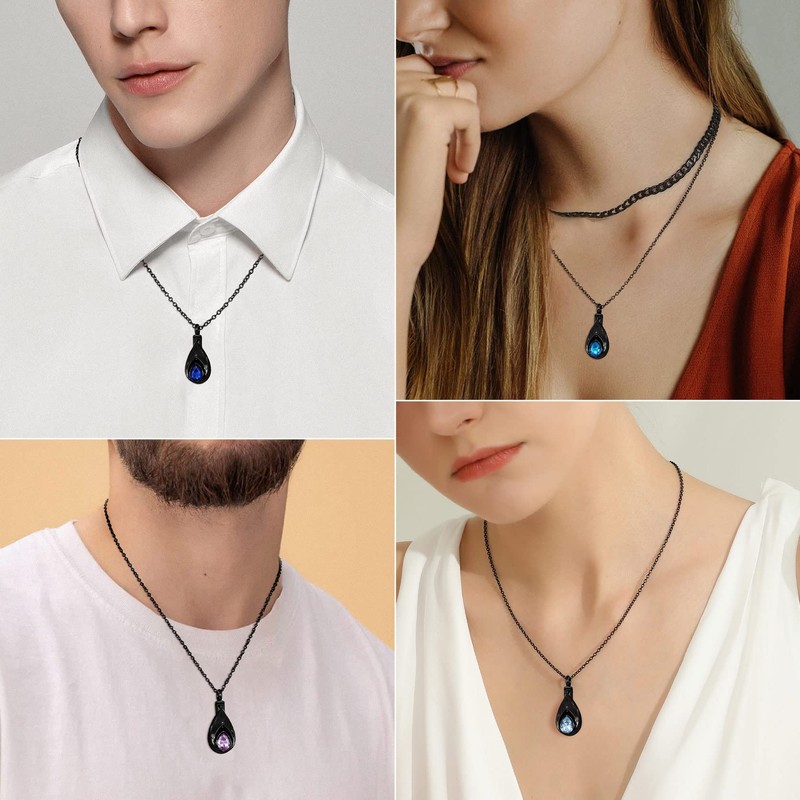 GoldChic Stainless Steel Memorial Urn Necklace for Ashes Women Men Necklace with Teardrop Cubic Zirconia Urn Pendant Black Ash Amulet for Keepsake with 51 cm + 5 cm Chain, Stainless Steel